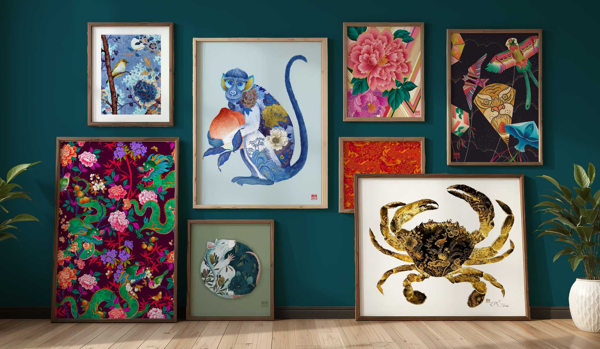 Discover the enchanting world of Chris's Chinese Zodiac Art Series, where the 12 animals of the Chinese Lunar Calendar are brought to life with exquisite detail and vibrant charm. Each animal sign is thoughtfully created to invite abundant blessings and celebrate meaning connections!